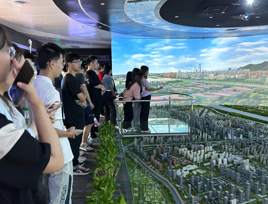 园区内现代建筑群错落有致,每一砖一瓦都蕴含着创新和科技的基因。evo视讯官网科技IT菁英暑期实训营的学员们怀揣着对科技的无限憧憬步入研创园展厅。展厅内部设计充满科技感,一块块巨大的模型和显示屏映入眼帘,生动展现了研创园的科技规划,以及从梦想走向现实的开展历程。
